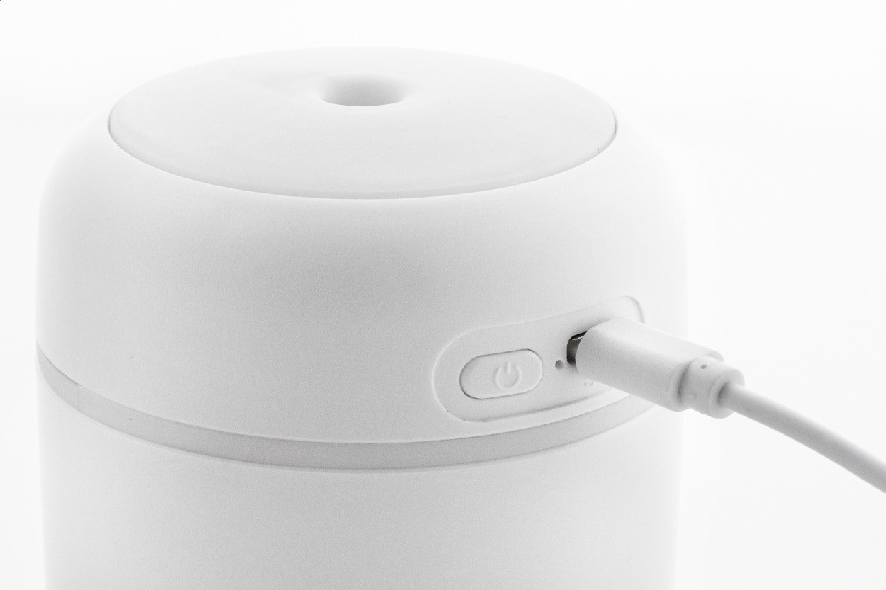 Umidificator de birou, din ABS reciclat, cu lumină LED multicoloră. Include cablu de încărcare USB. Capacitate rezervor: 280 ml.