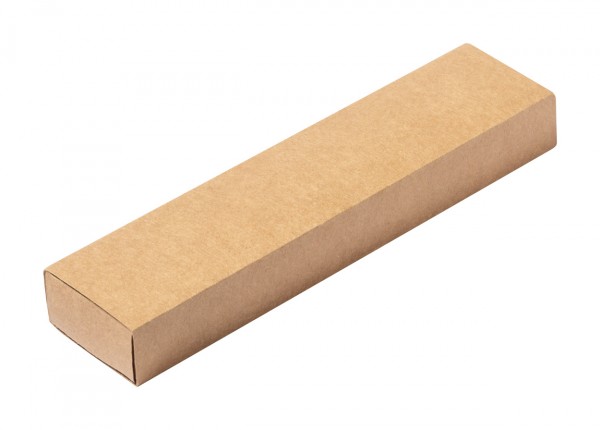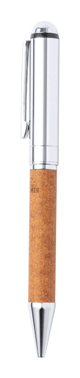 Pix din metal, cu deschidere prin răsucire, cu cilindru acoperit din piele reciclată, cu mină albastră. În cutie de hârtie kraft.