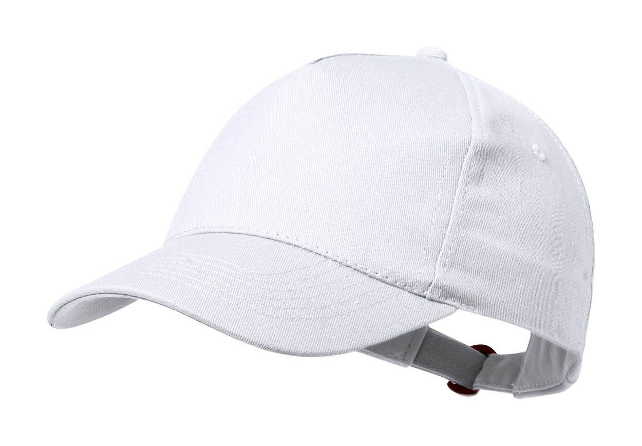 Șapcă de baseball, din bumbac reciclat, cu 5 panouri și închidere cu cataramă metalică.