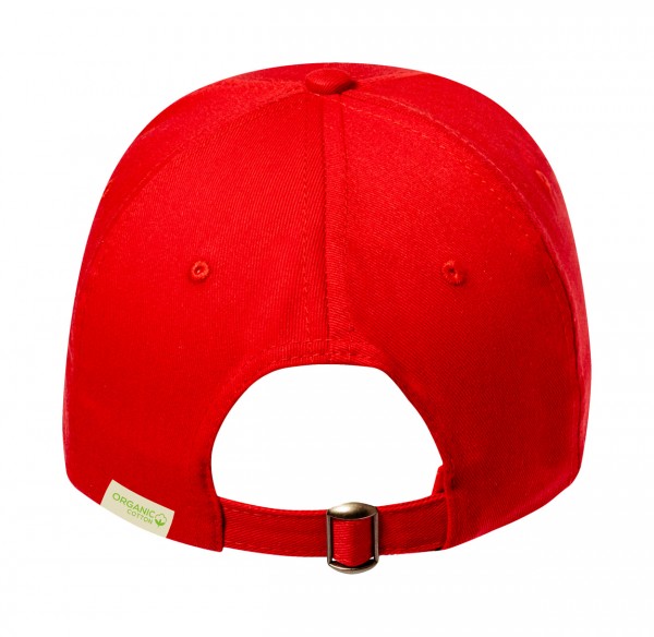 Șapcă de baseball, din bumbac reciclat, cu 5 panouri și închidere cu cataramă metalică.