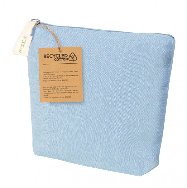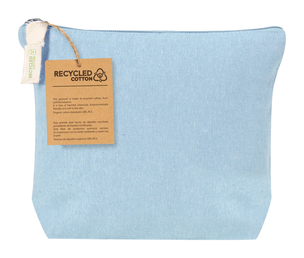 Geantă cosmetică, cu fermoar, din bumbac reciclat. Cu etichetă distinctivă din bumbac reciclat.