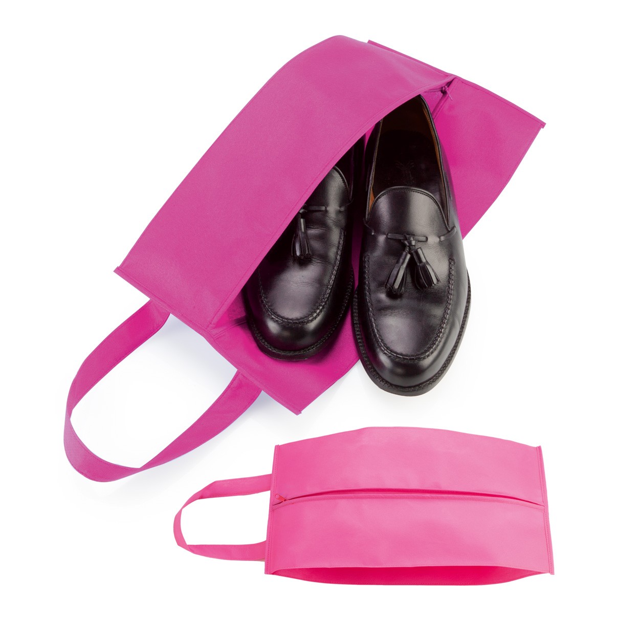 Geantă cu fermoar şi mâner pentru 1 pereche de pantofi, material neţesut.