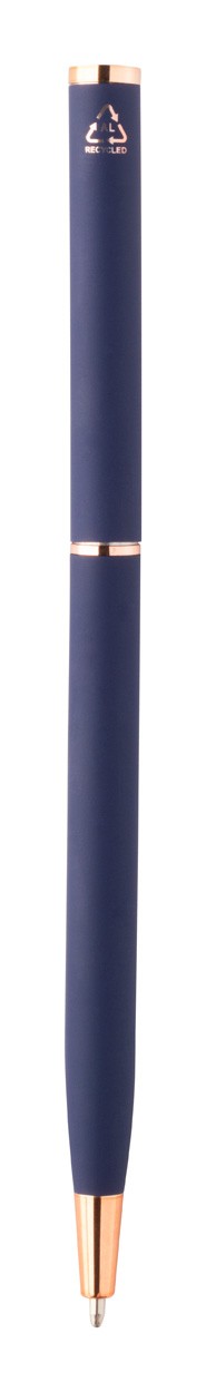 Pix din aluminiu reciclat, cu finisaj cauciucat și detalii auriu roz. Cu acoperire specială pentru gravarea laser în oglindă în culoarea aur roz. Cu mină albastră.