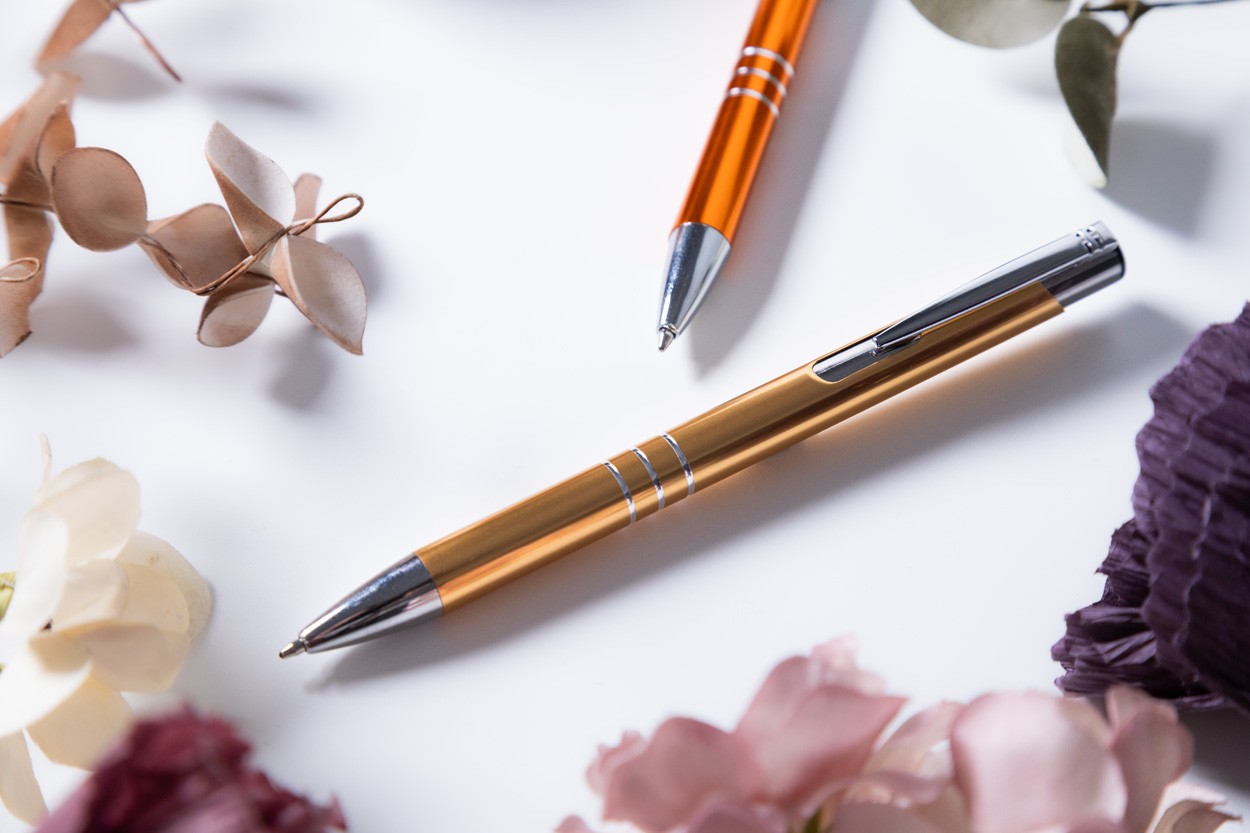 Pix din aluminiu reciclat, cu finisaj metalic și mină albastră.