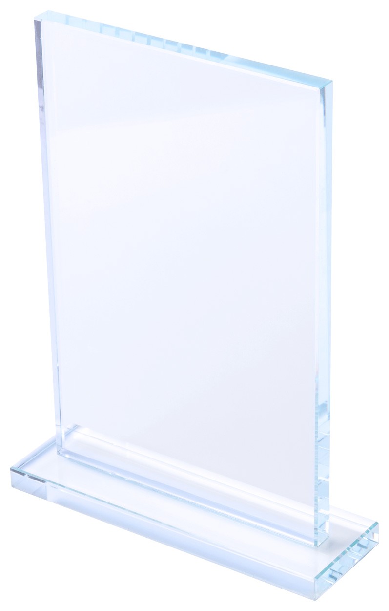 Trofeu dreptunghiular din sticlă, în cutie neagră de cadou.