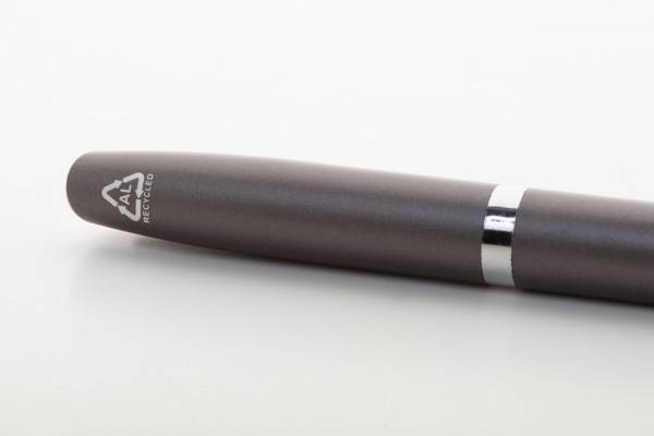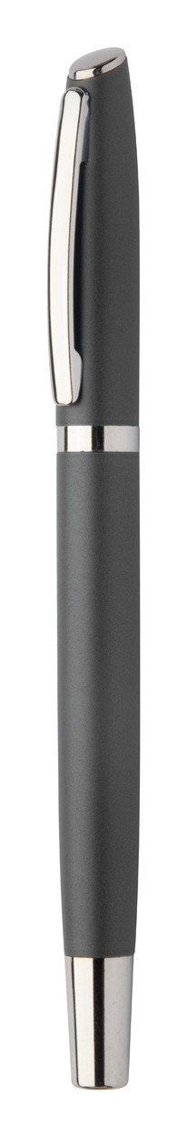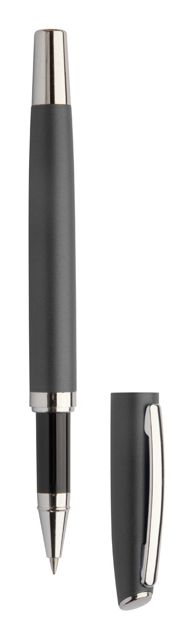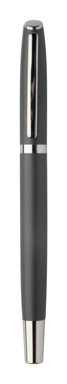 Set de pixuri cu rolă, din aluminiu reciclat, în cutie de cadou din hârtie neagră. Cu mină albastră.