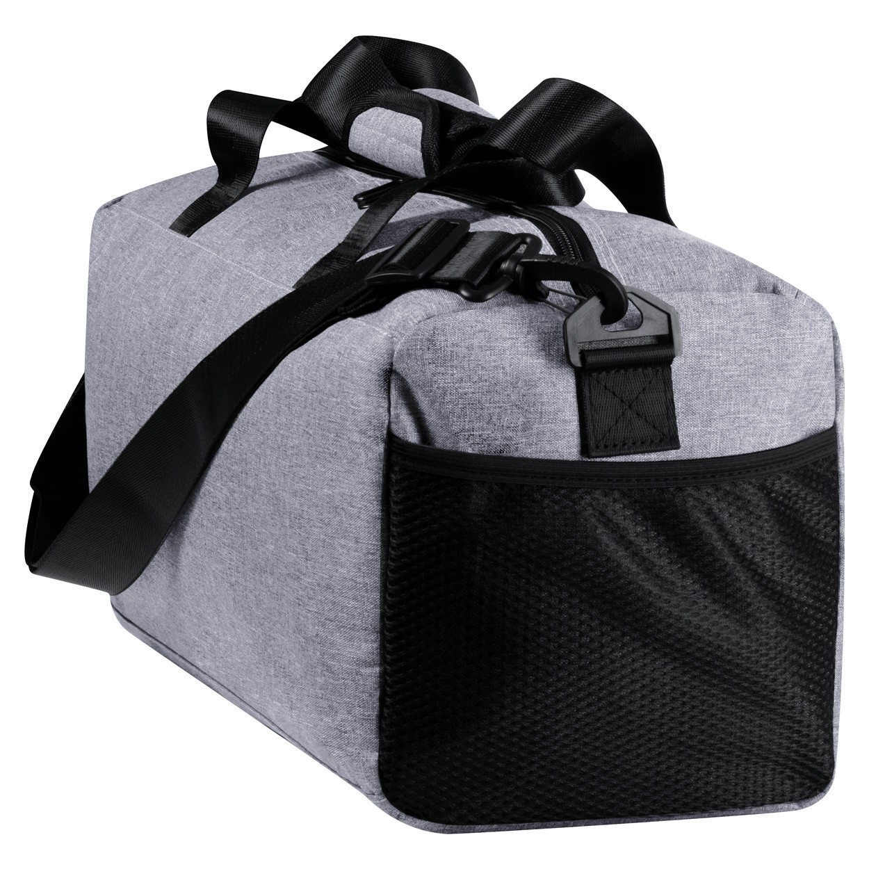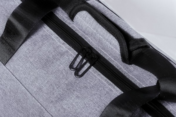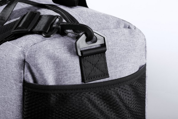 Geantă sport cu compartiment cu fermoar, buzunare laterale din plasă și curea de umăr reglabilă, poliester 600D.
