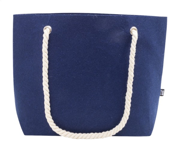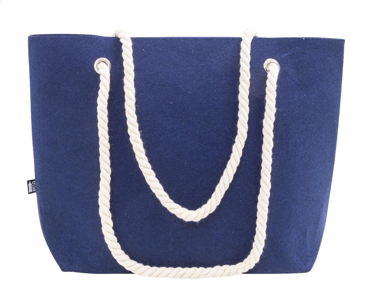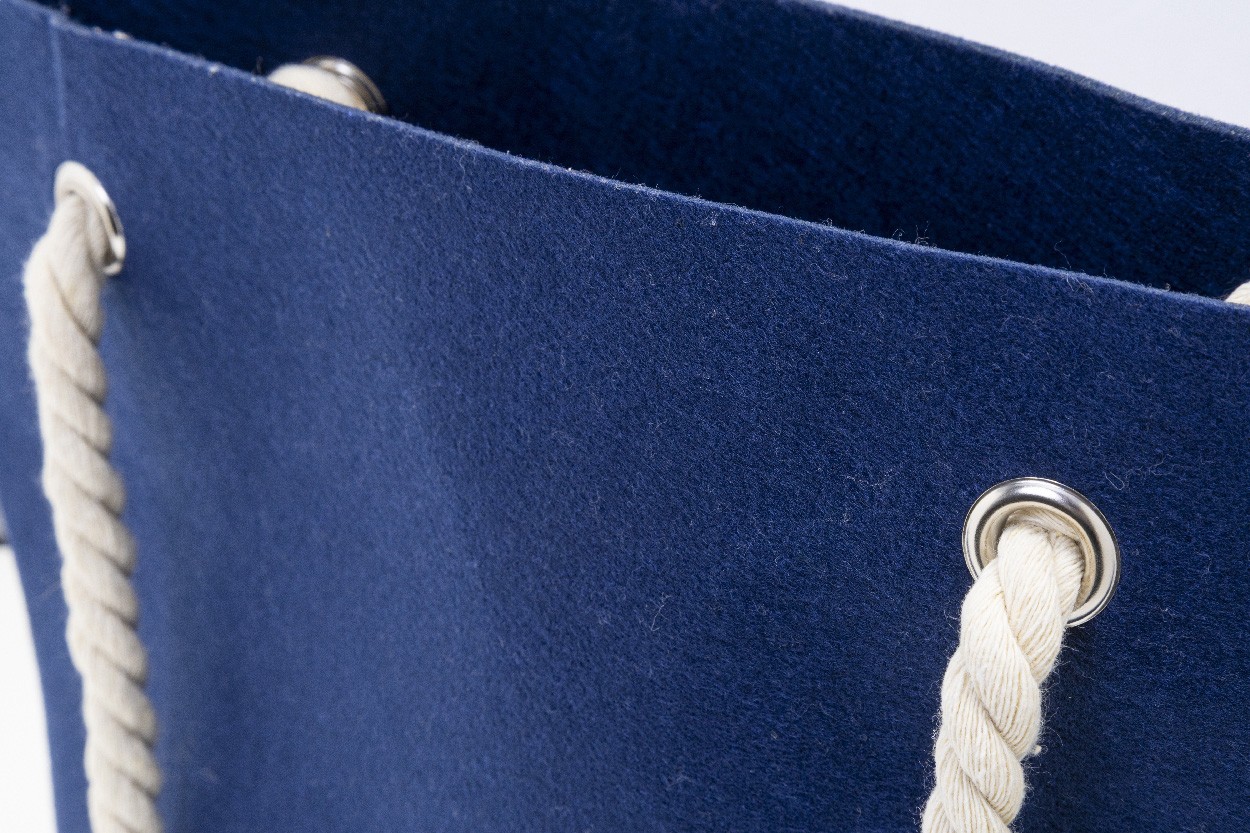 Geantă de plajă sau de cumpărături, din fetru RPET, cu mânere din șnur de bumbac și clin la bază. Cu etichetă distinctivă din RPET.