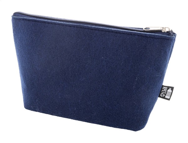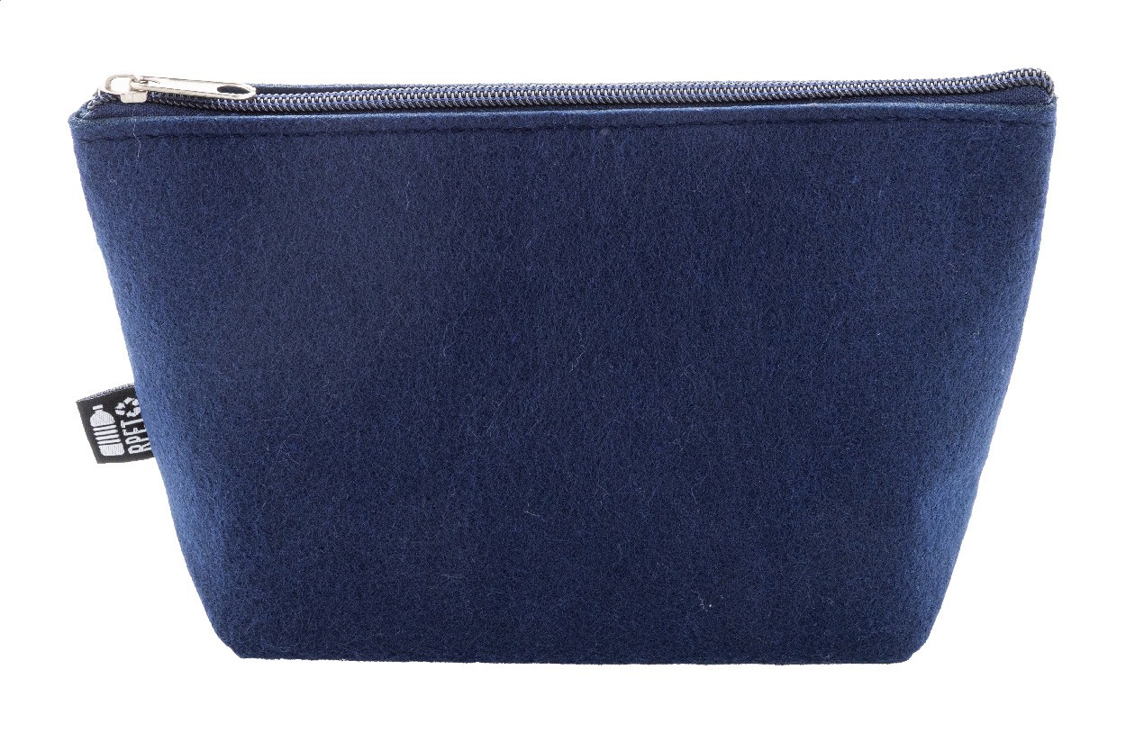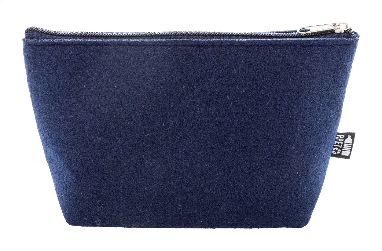 Geantă pentru cosmetice, din fetru RPET, cu fermoar. Cu etichetă distinctivă din RPET.