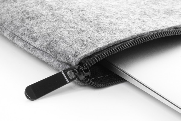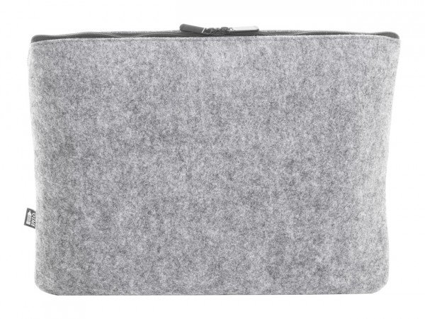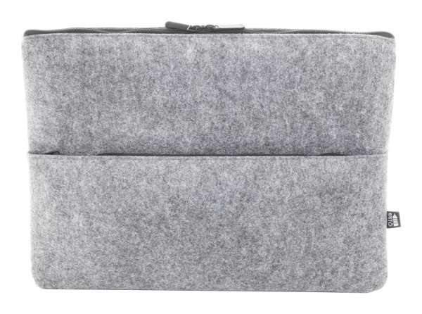 Geantă pentru laptop, din fetru RPET, cu compartiment cu fermoar și buzunar frontal. Se potrivește laptopurilor de până la 15". Cu etichetă distinctă RPET.