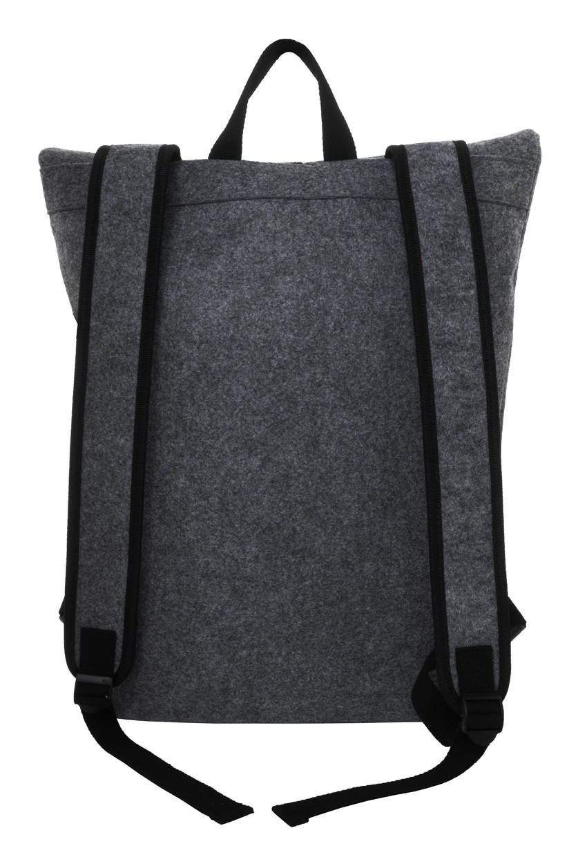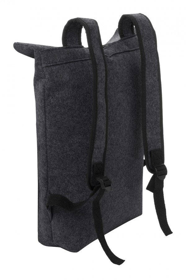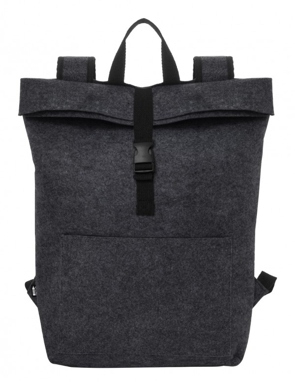Rucsac rolltop, din fetru RPET, cu compartiment principal cu inchidere cu cataramă și buzunar frontal cu fermoar, compartiment pentru laptop (15") și bretele căptușite. Cu etichetă distinctă RPET.