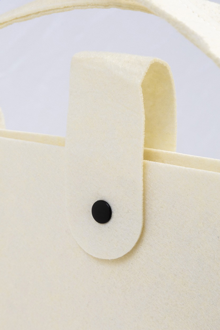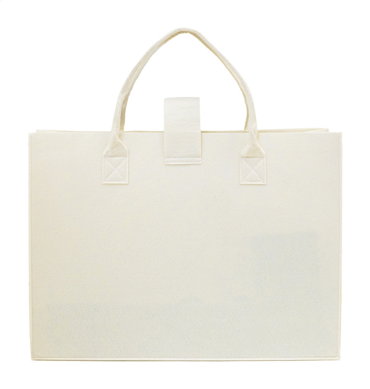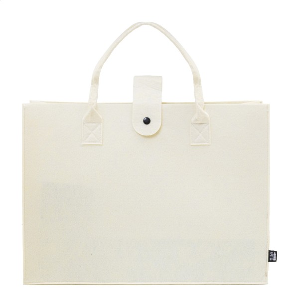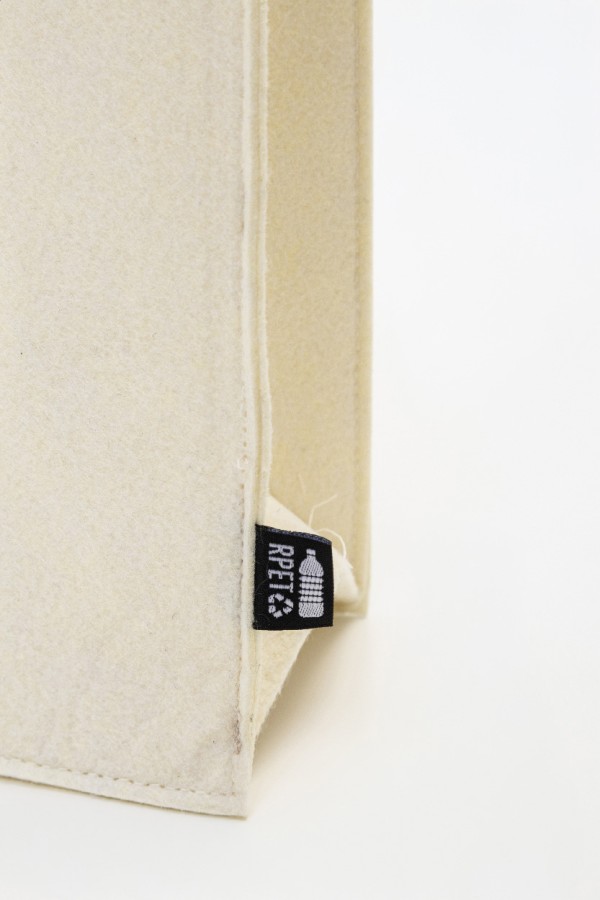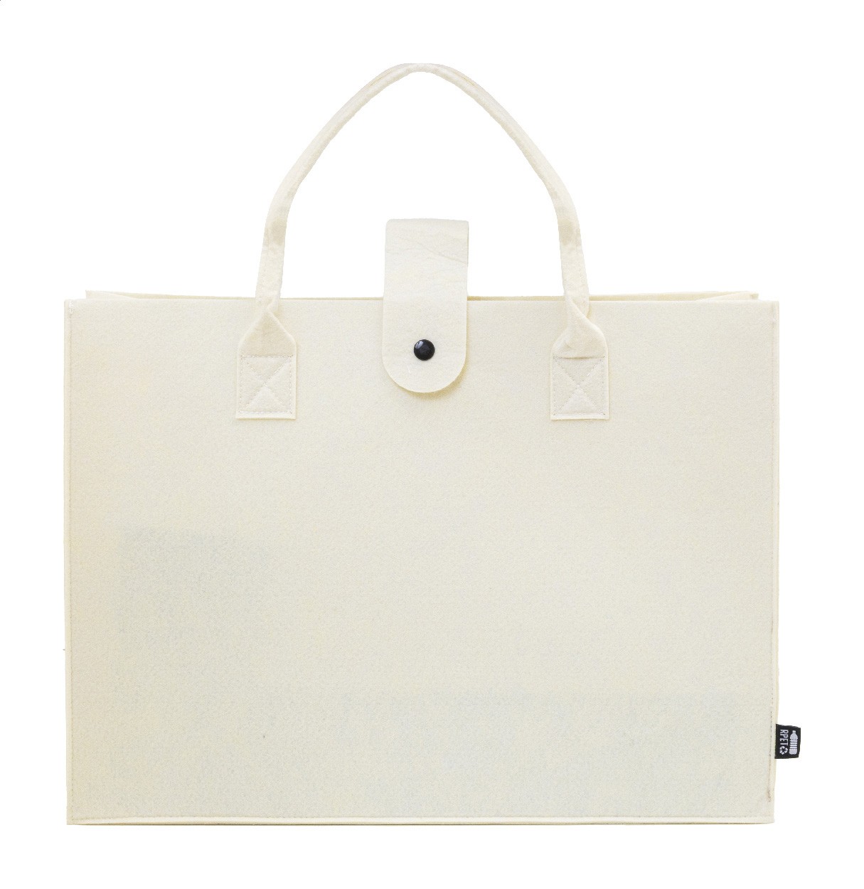 Geantă de cumpărături, din fetru RPET, cu clin, curea de închidere cu nasturi și mânere scurte. Cu etichetă distinctivă RPET.