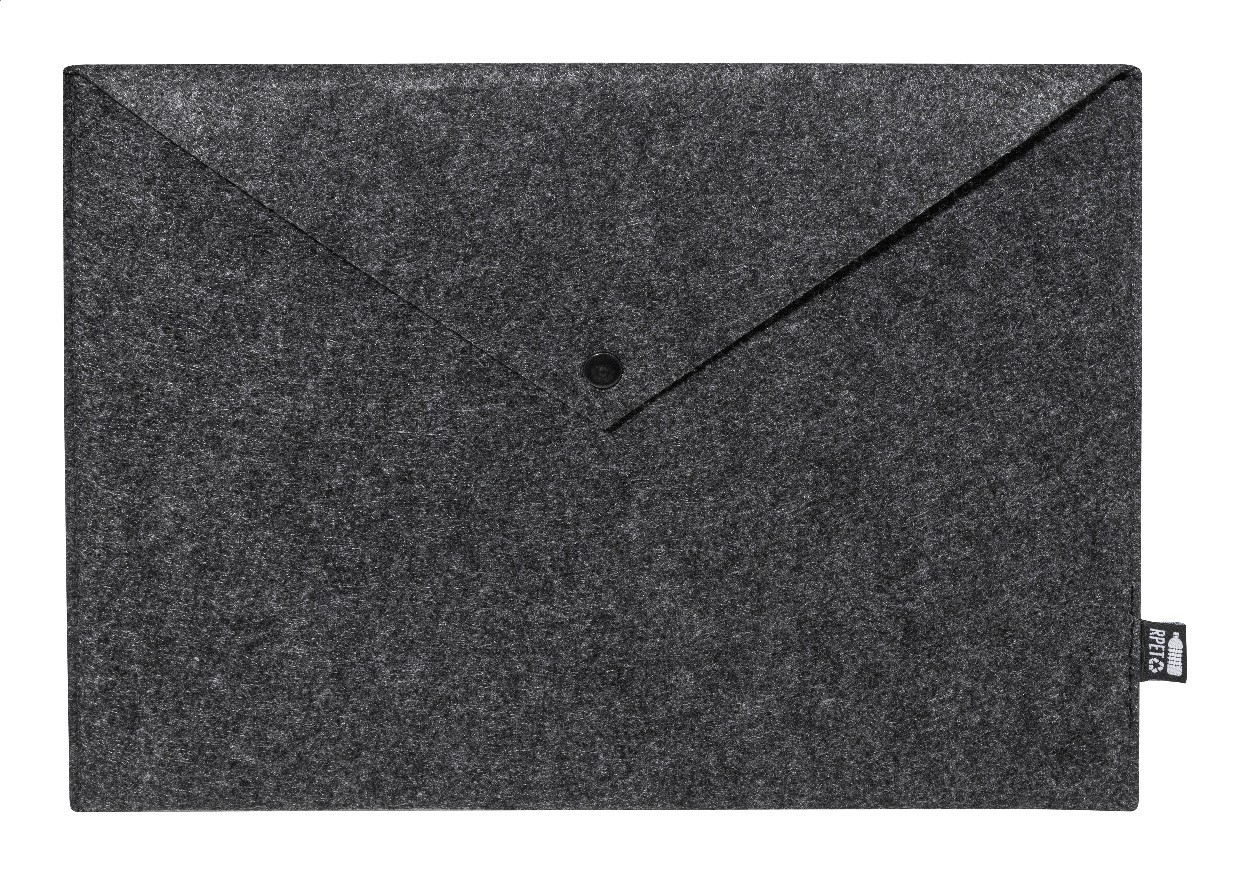 Geantă pentru documente sau laptop, din fetru RPET, cu închidere cu capsă. Potrivită pentru laptopuri de până la 13". Cu etichetă distinctivă din RPET.