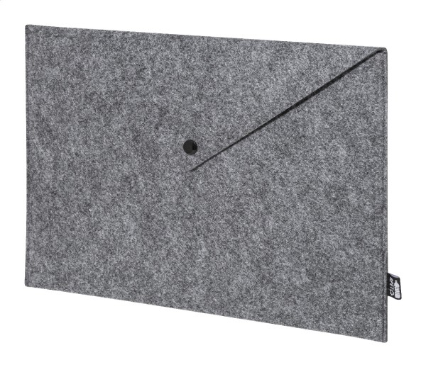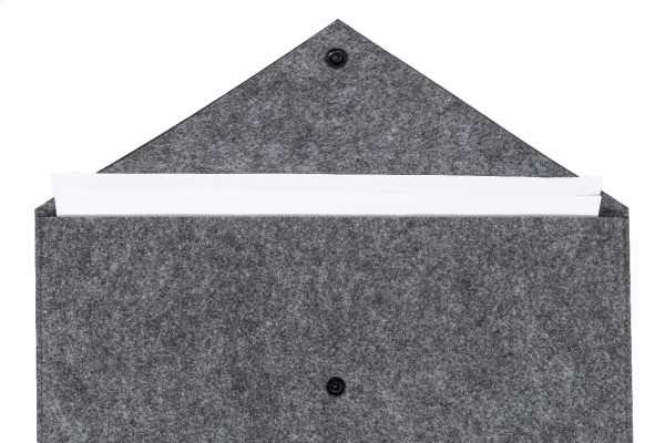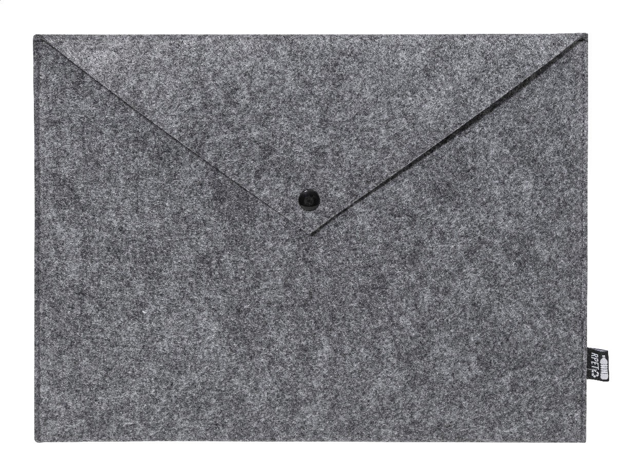 Geantă pentru documente sau laptop, din fetru RPET, cu închidere cu capsă. Potrivită pentru laptopuri de până la 13". Cu etichetă distinctivă din RPET.