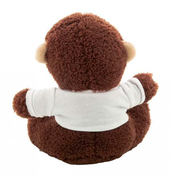 Maimuţă din pluș RPET, cu tricou imprimabil din poliester RPET. Comenzile fără imprimare se livrează cu tricoul detașat.