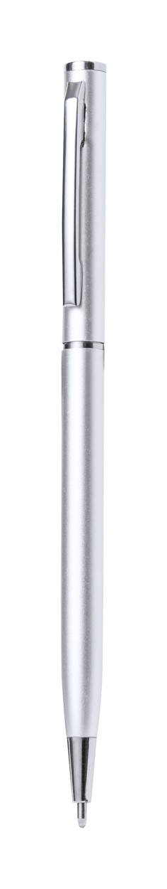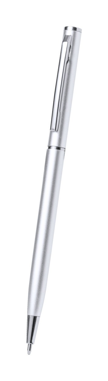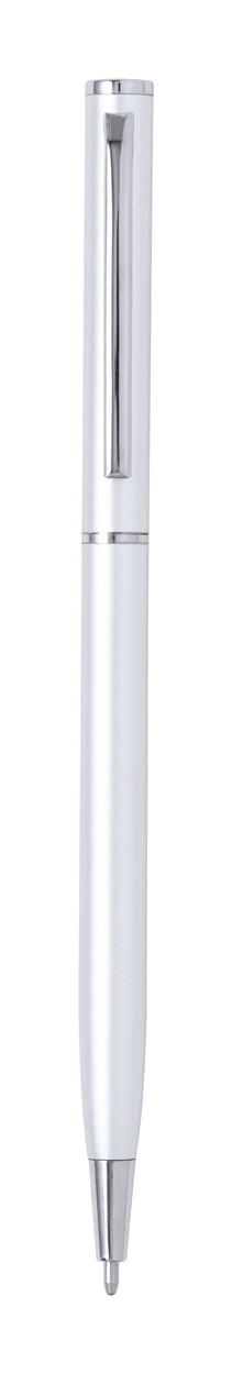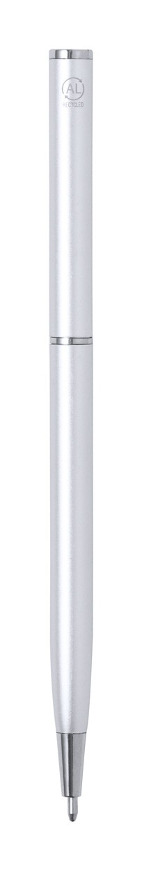 Pix din aluminiu reciclat, cu detalii metalice și mină albastră.