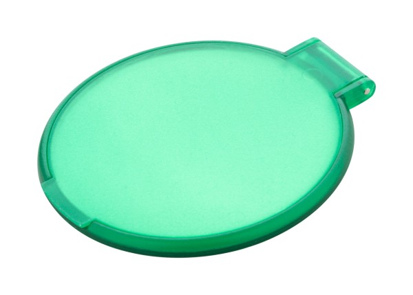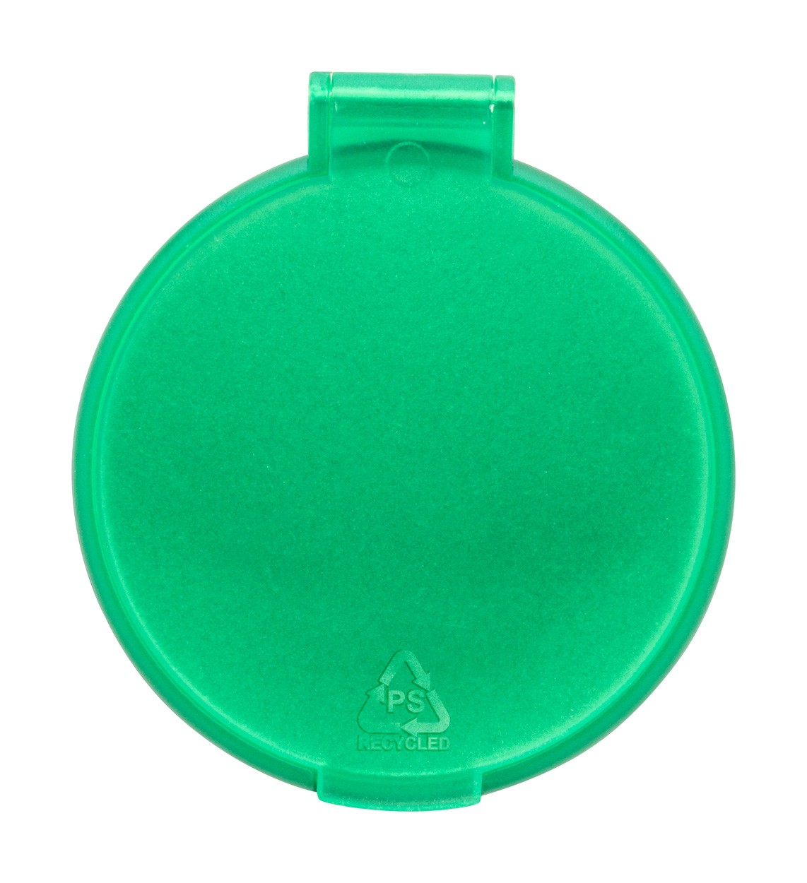 Oglindă de buzunar, rotundă, în carcasă PS reciclată, translucidă.