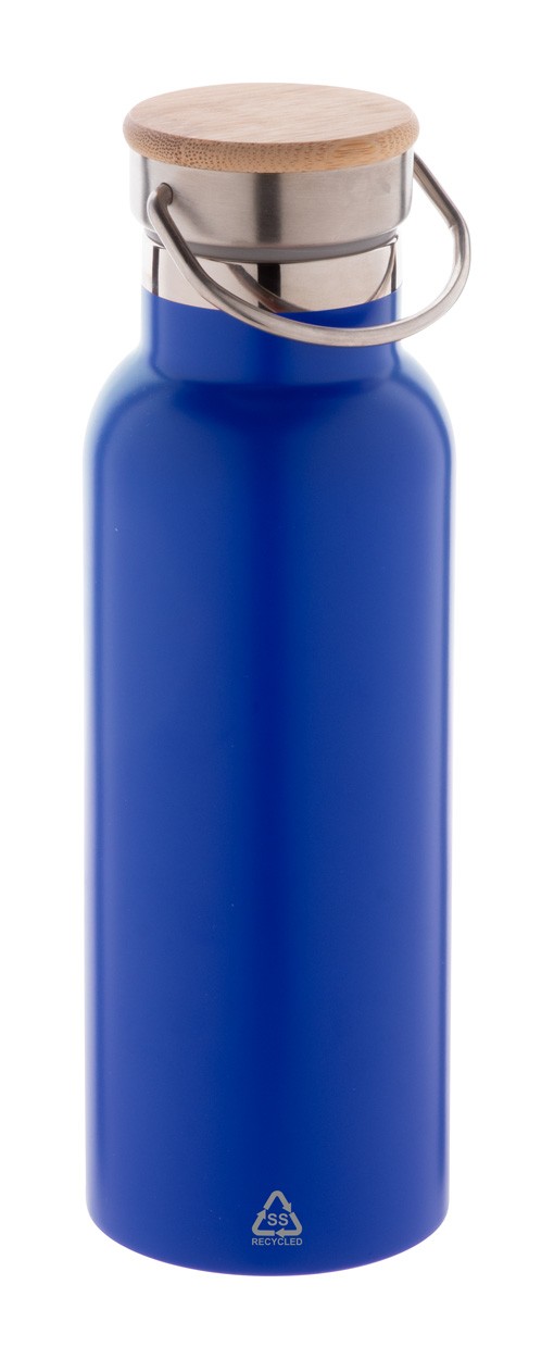 Termos din oțel inoxidabil reciclat, cu perete dublu, cu capac de transport din bambus. 500 ml.