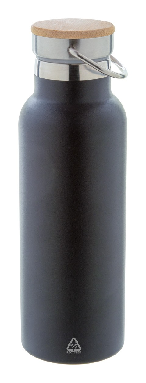 Termos din oțel inoxidabil reciclat, cu perete dublu, cu capac de transport din bambus. 500 ml.