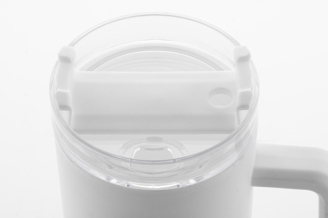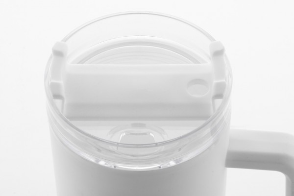 Cană termoizolată din plastic PP reciclat, cu perete dublu, cu capac din plastic și paie. 900 ml.