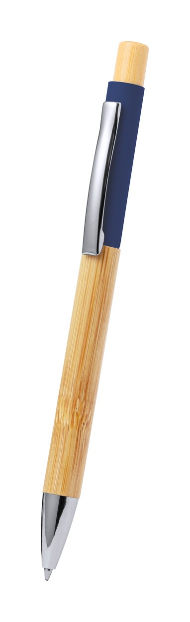 Pix din aluminiu, cu finisaj cauciucat și mâner din bambus. Cu mină albastră.