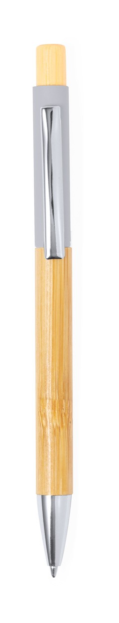 Pix din aluminiu, cu finisaj cauciucat și mâner din bambus. Cu mină albastră.