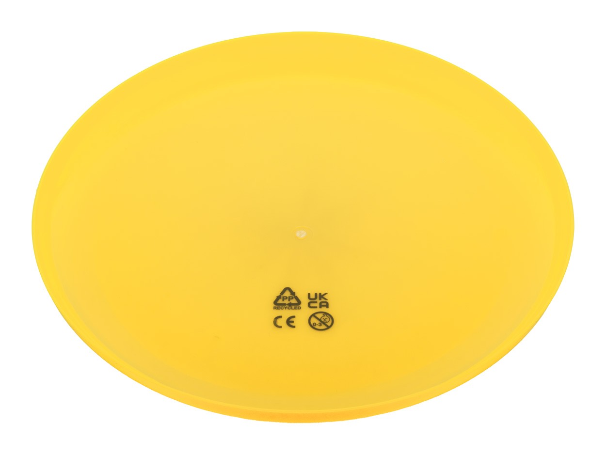 Frisbee din plastic PP reciclat, cu suprafață plană. Ideal pentru imprimare.