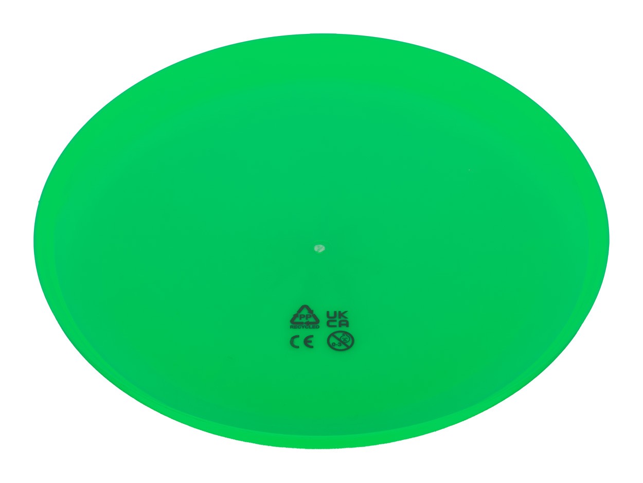 Frisbee din plastic PP reciclat, cu suprafață plană. Ideal pentru imprimare.