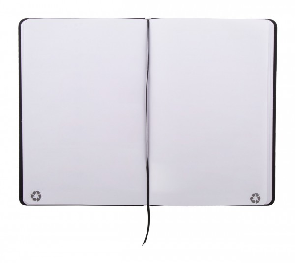 Caiet cu copertă din piele PU reciclată, cu 100 de foi veline din hârtie reciclată. Cu semn de carte de culoare asortată și bandă de cauciuc. Dimensiune A5.