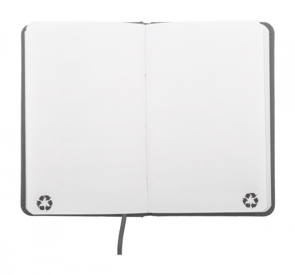 Caiet cu copertă din piele PU reciclată, cu 100 de foi veline din hârtie reciclată. Cu semn de carte de culoare asortată și bandă de cauciuc. Dimensiune A6.
