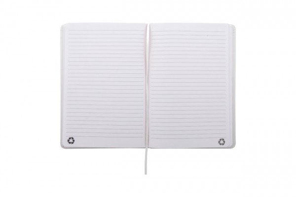 Caiet cu coperta din piele PU reciclată, cu 100 de foi dictando, din hârtie reciclată. Cu semn de carte de culoare asortată și bandă de cauciuc. Dimensiune A5.