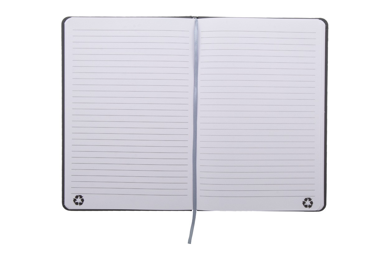 Caiet cu coperta din piele PU reciclată, cu 100 de foi dictando, din hârtie reciclată. Cu semn de carte de culoare asortată și bandă de cauciuc. Dimensiune A5.