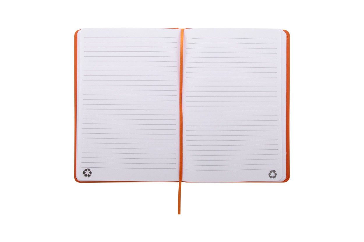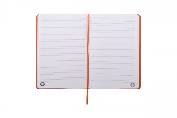 Caiet cu coperta din piele PU reciclată, cu 100 de foi dictando, din hârtie reciclată. Cu semn de carte de culoare asortată și bandă de cauciuc. Dimensiune A5.