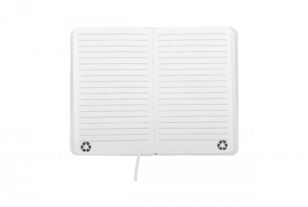 Caiet cu coperta din piele PU reciclată, cu 100 de foi dictando, din hârtie reciclată. Cu semn de carte de culoare asortată și bandă de cauciuc. Dimensiune A6.