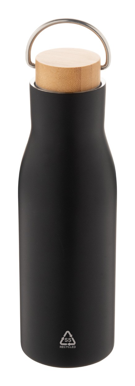 Termos din oțel inoxidabil reciclat, cu perete dublu, cu capac de transport din bambus, 500 ml.