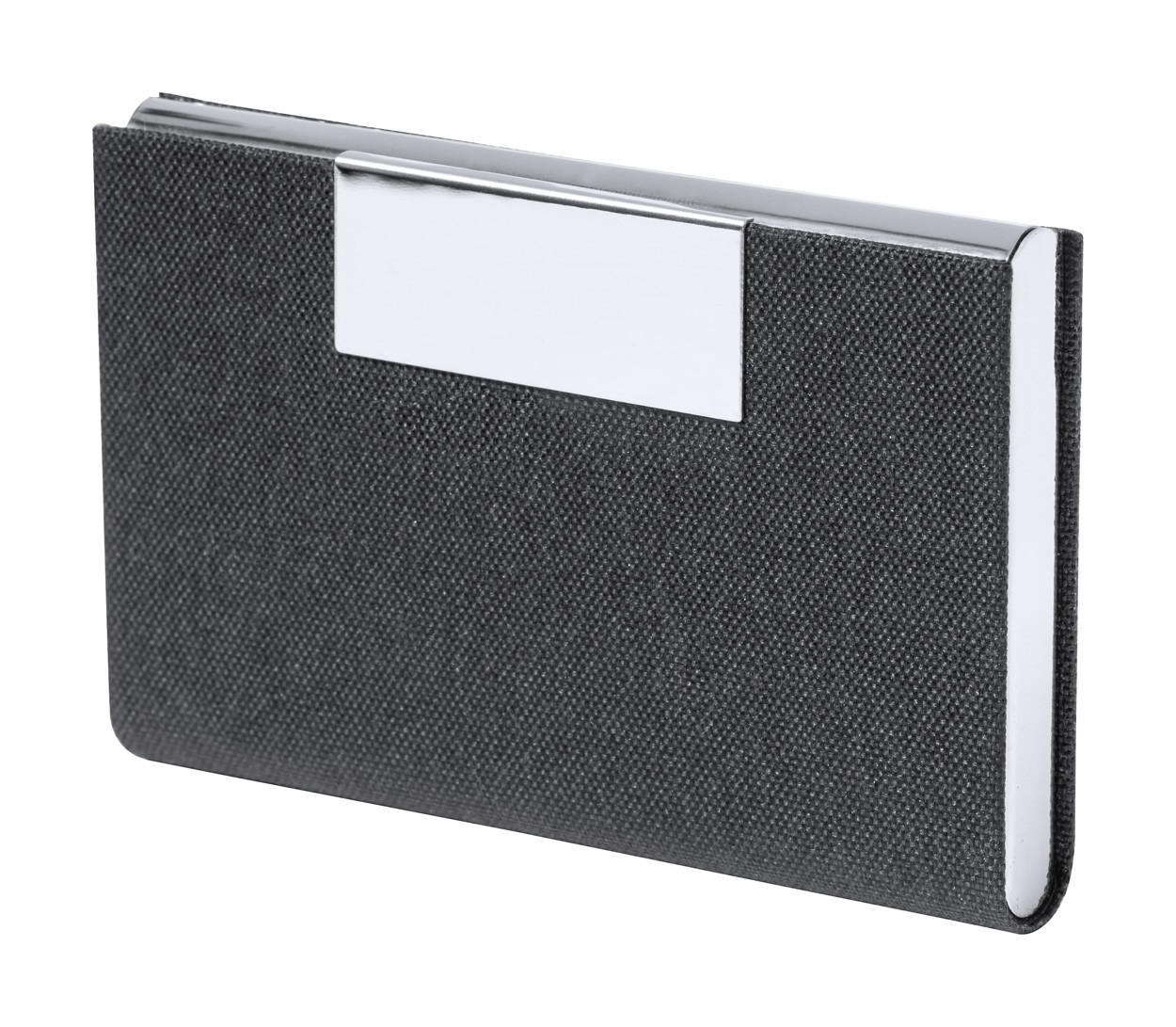 Suport pentru cărți de vizită, din metal, acoperit cu poliester RPET, cu parte metalică imprimabilă.