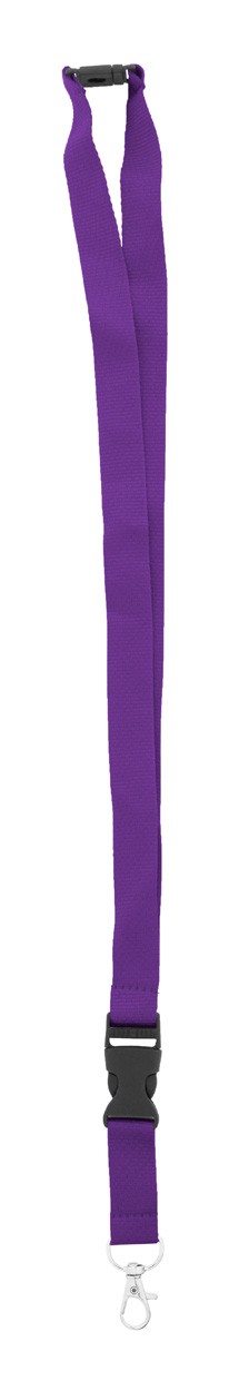 Lanyard din poliester RPET, cu carabină metalică detașabilă și cataramă de siguranță.