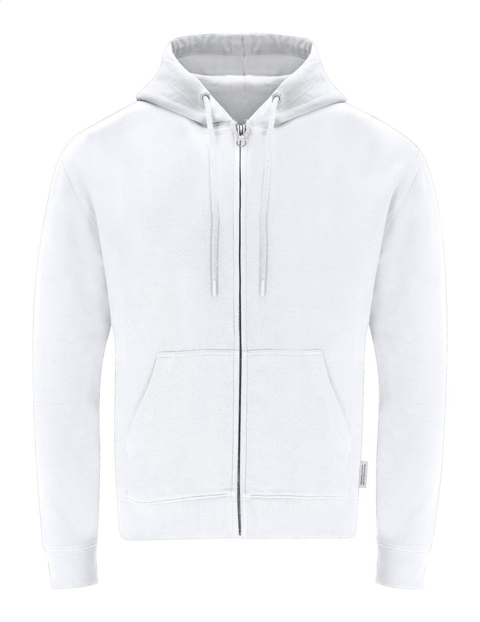 Hanorac cu fermoar și buzunare frontale, din bumbac organic 60% și poliester RPET 40%, 280 g/m2.