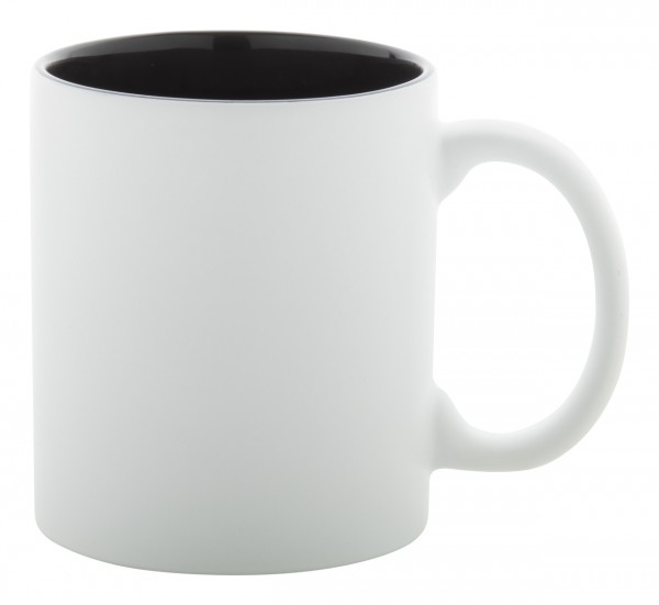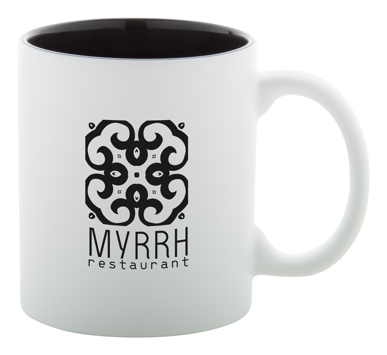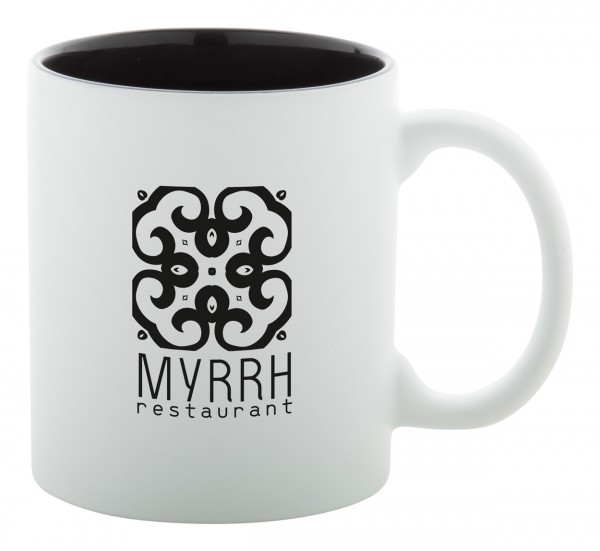 Biały kubek z kolorowym środkiem i nadrukiem w pasującym kolorze, poj. 350 ml. W pudełku.