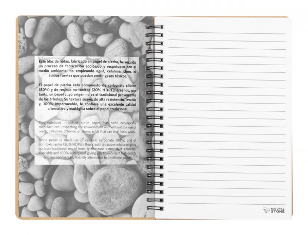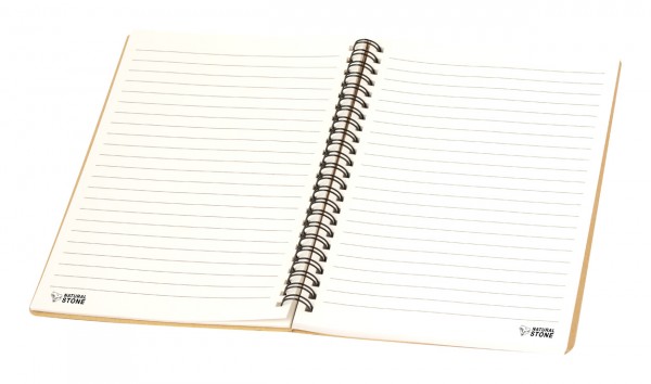 Caiet cu spirală, din hârtie de piatră, cu copertă din cu hârtie reciclată, cu 70 de foi dictando, dimensiune A5.