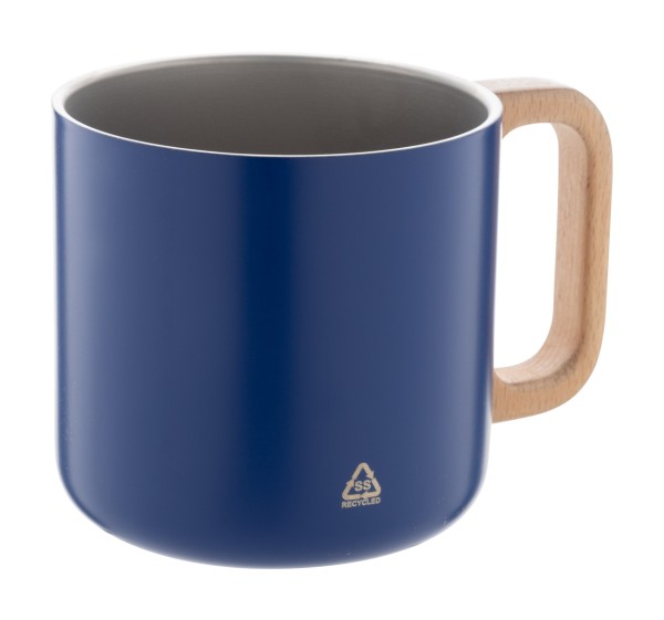 Cană termică, din oțel inoxidabil reciclat, cu perete dublu, cu mâner din lemn. 350 ml.