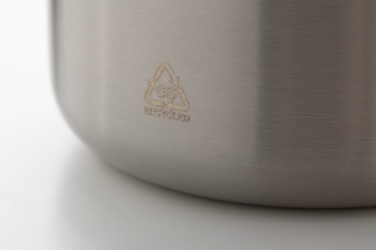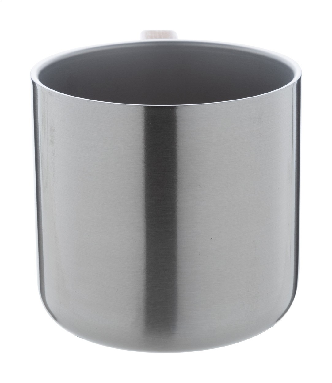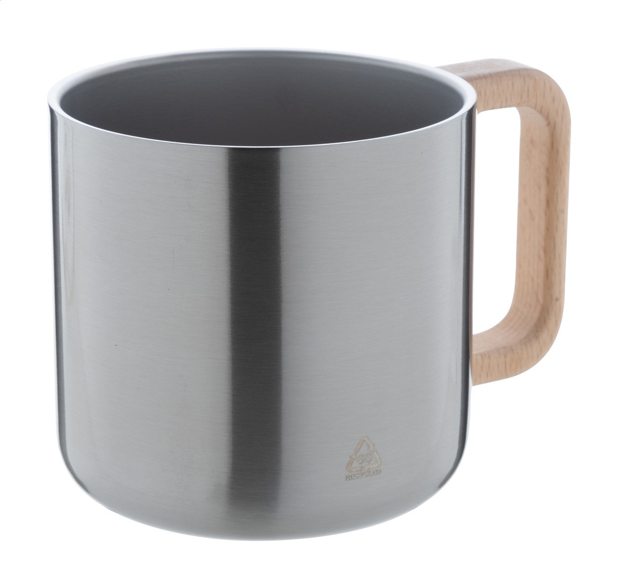 Cană termică, din oțel inoxidabil reciclat, cu perete dublu, cu mâner din lemn. 350 ml.