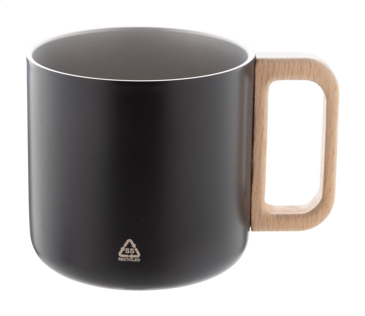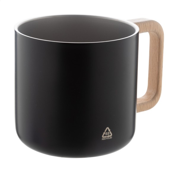 Cană termică, din oțel inoxidabil reciclat, cu perete dublu, cu mâner din lemn. 350 ml.
