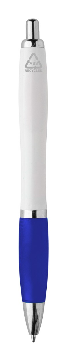 Pix din plastic ABS reciclat, cu cilindru alb, mâner colorat și părți cromate. Cu mină albastră.