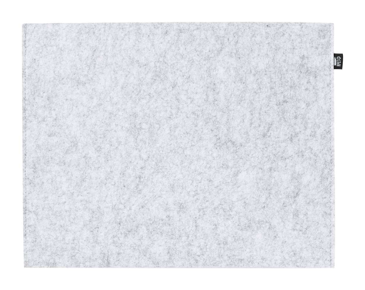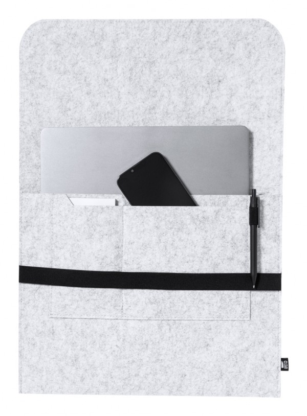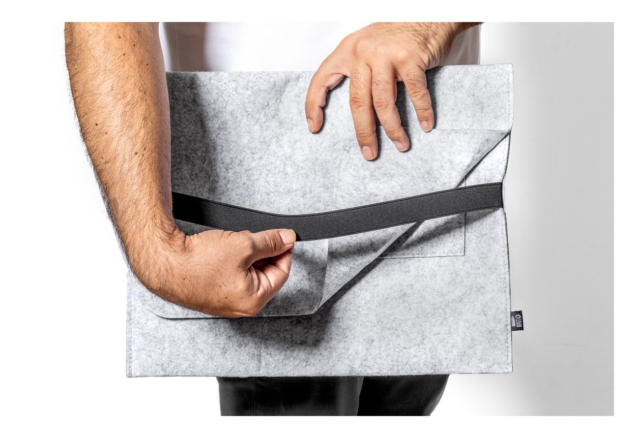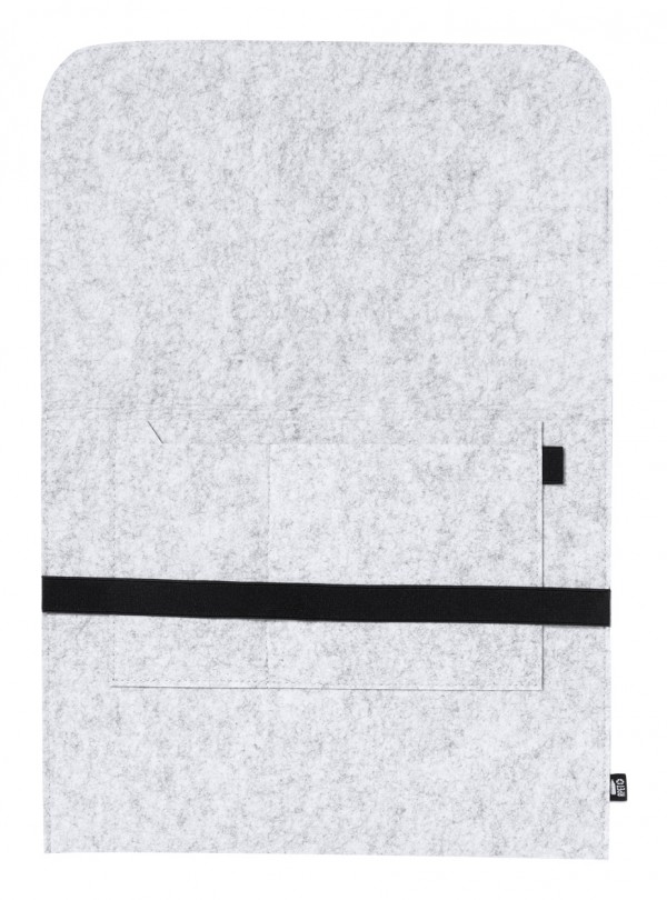 Geantă pentru laptop, din pâslă RPET, cu curea de cauciuc, buzunar frontal și închidere cu velcro. Cu etichetă distinctivă RPET.