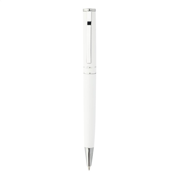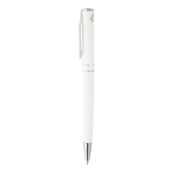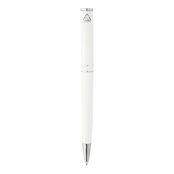 Pix cu bilă, din aluminiu reciclat, cu piese și inele cromate. În cutie cadou neagră. Cu mină albastră.