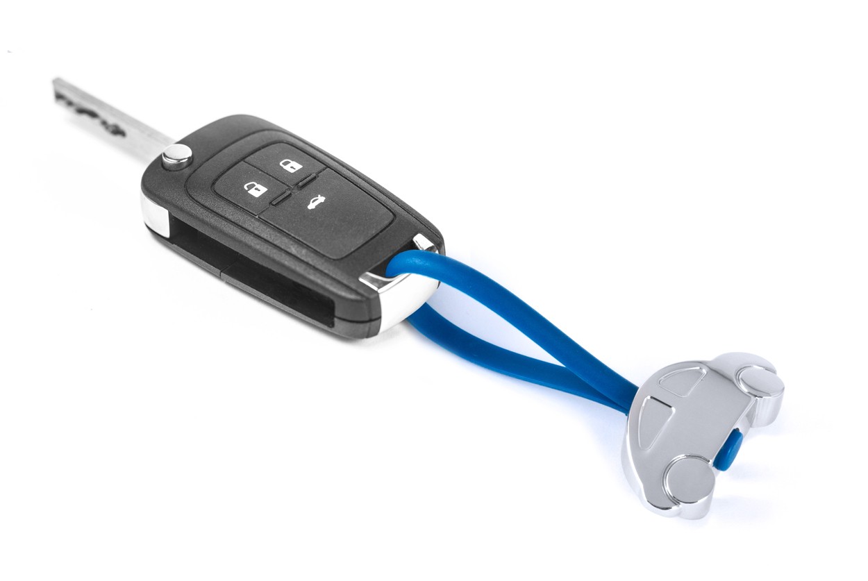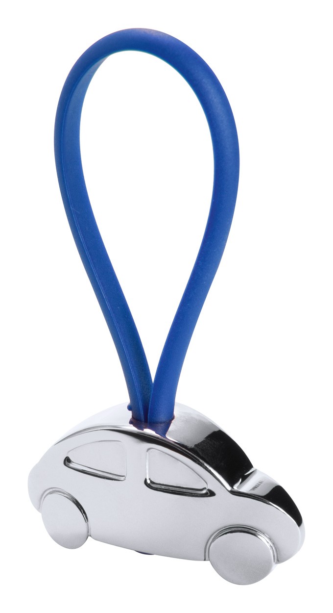 Breloc din aluminiu în formă de mașină, cu cauciuc colorat.