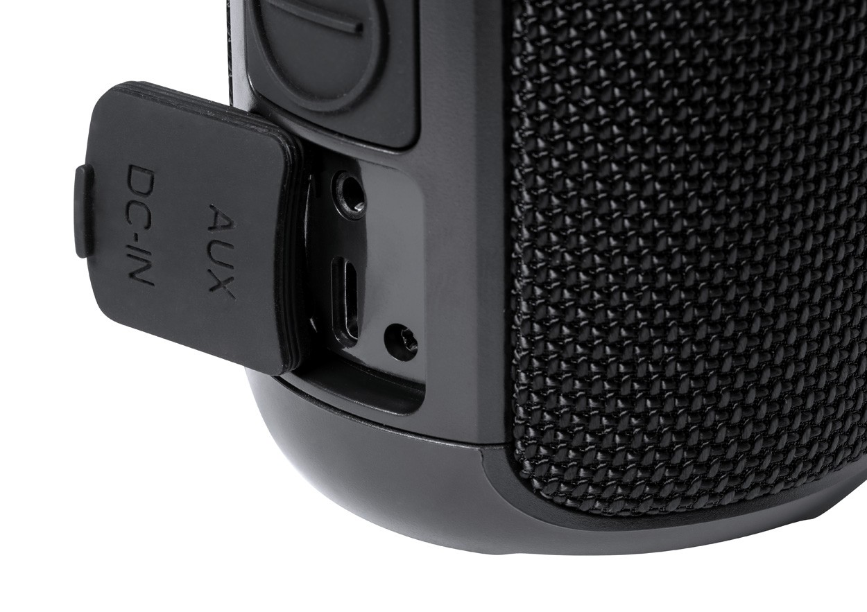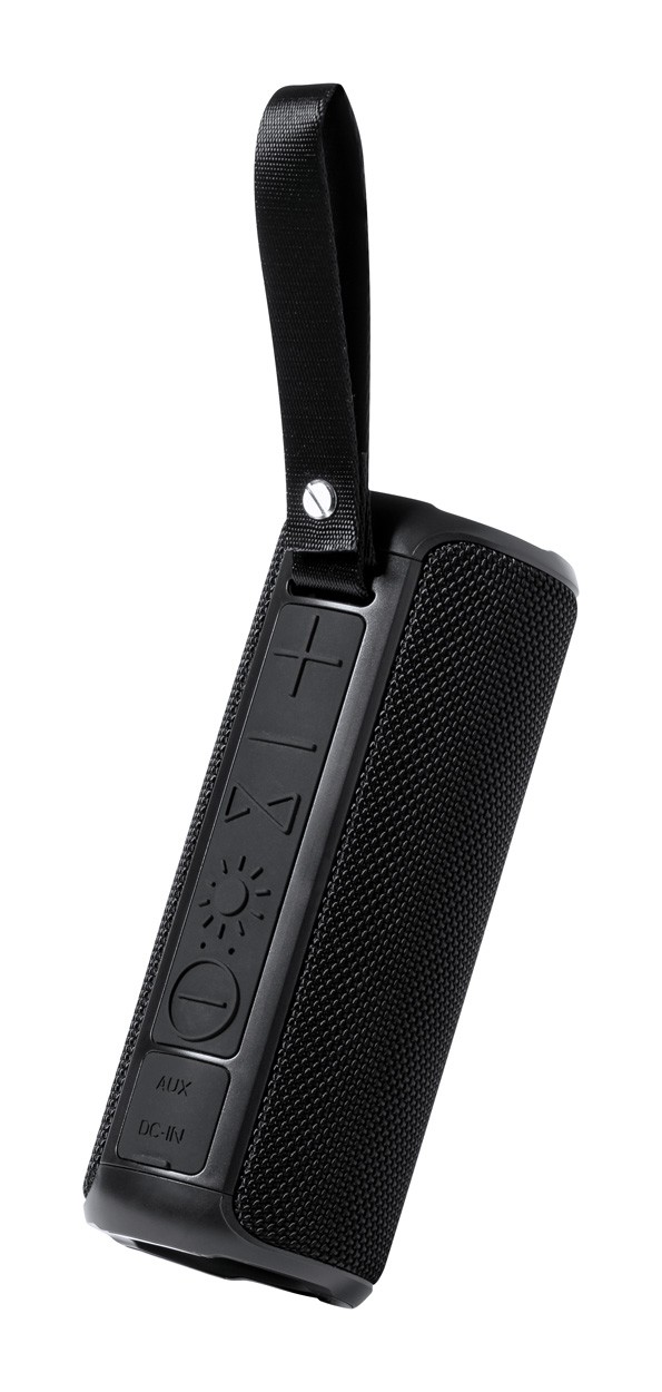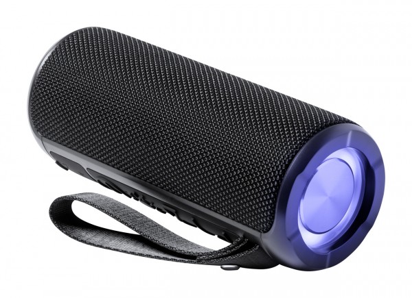 Difuzor Bluetooth, din plastic ABS, cu curea de transport și baterie reîncărcabilă încorporată. Cu lumină LED multicoloră și 6 moduri de lumină. Inclusiv cablu de încărcare USB.