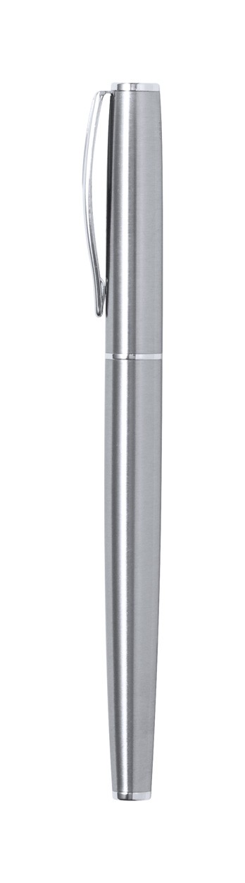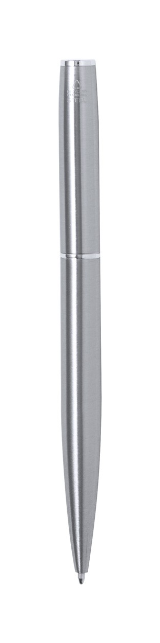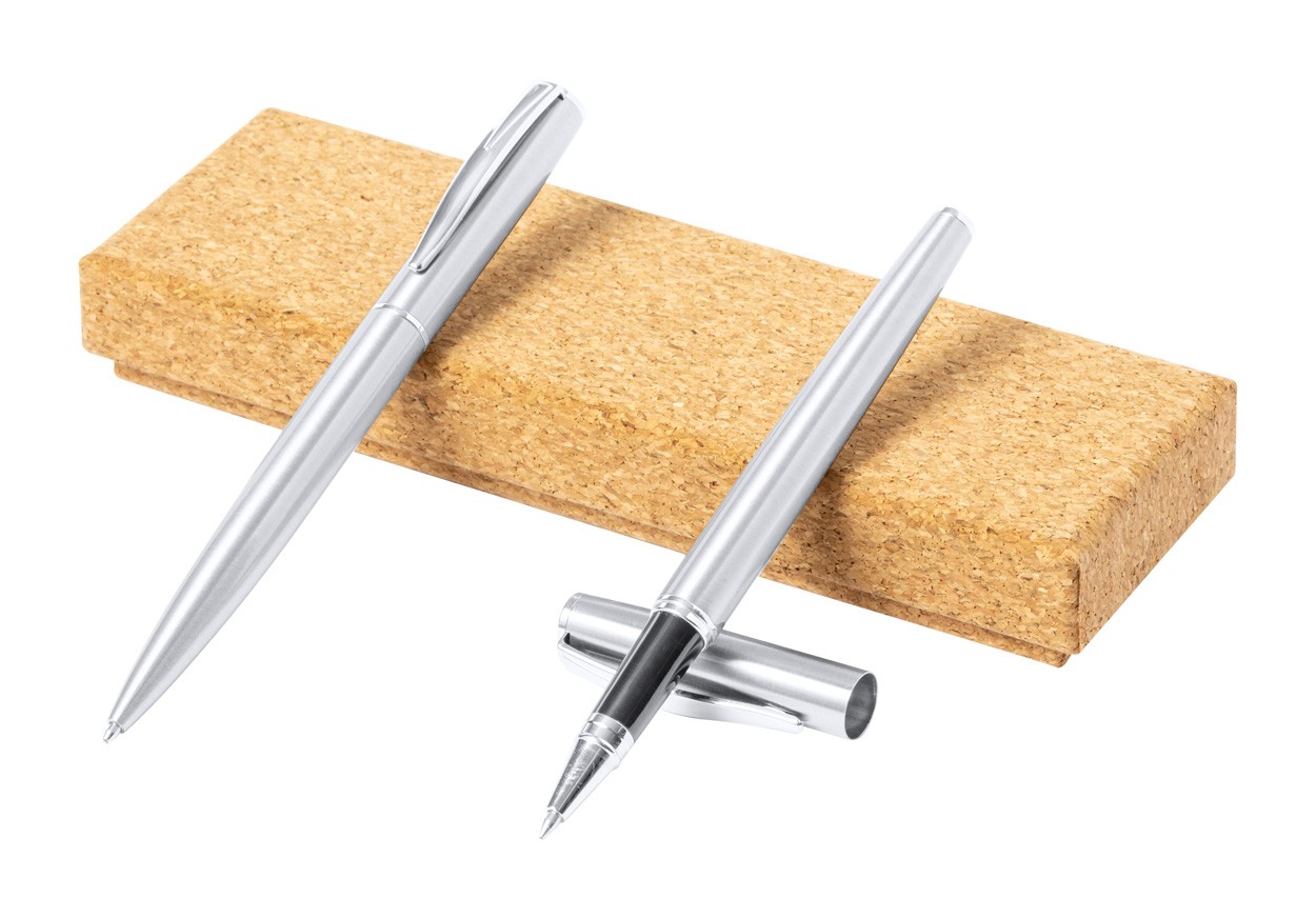Set de pixuri din oțel inoxidabil reciclat, cu pix cu bilă și pix roller. În cutie cadou din plută naturală, cu mină albastră.