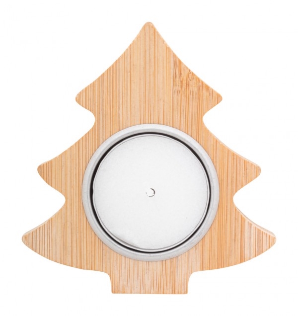 Suport pentru lumânări, de Crăciun, din bambus, cu lumânare din ceară cu parfum de vanilie. Timp de ardere: 4 ore. În cutie de hârtie kraft.